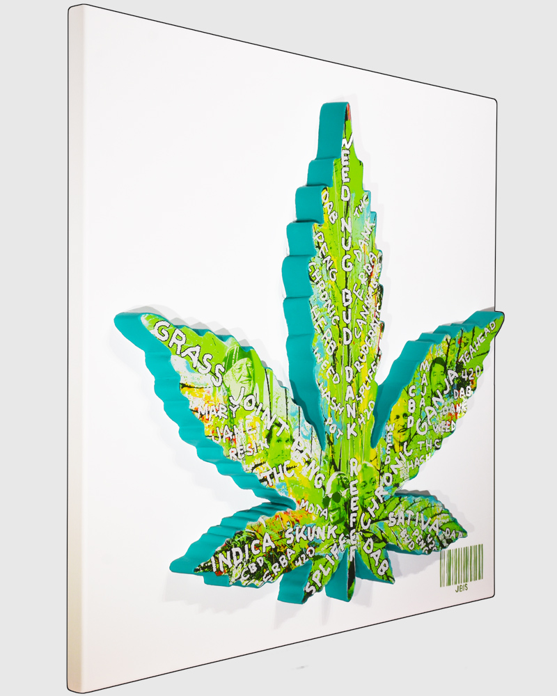 The Modern Visage series utilizes an area of the mixed media painting that is a 2.5 inch deep cutout or projection to create a stunning 3D wall sculpture
